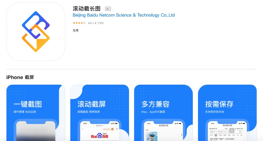 近日,百度推出一款名为 “滚动截长图”的APP,现已在苹果App Store上架,用户可以免费下载使用。滚动截长图APP可将录屏内容转化为长截图,适配多种场景,网站、APP均可截取。
