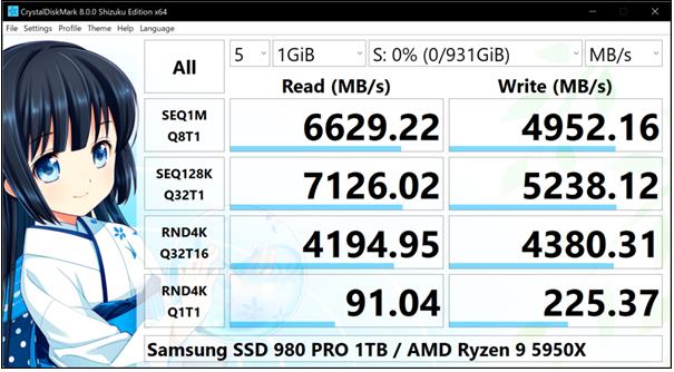 * 默认值:SEQ 1MiB Q8T1.SEQ 128KiB Q32T1.RND 4KiB Q32T1.RND 4KiB Q1T1