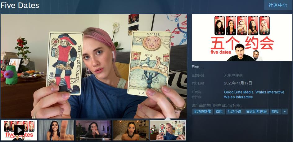 真人互动新游《Five Dates / 5个约会》现已在Steam开启预购,支持简体中文。目前折后价39元,预购特惠/发售后首周优惠截止日期为11月24日,本作将于2020年11月17日正式上市。