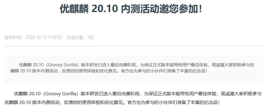 据优麒麟官方宣布,优麒麟 20.10(Groovy Gorilla)版本研发已进入最后完善阶段,现诚邀大家积极参与优麒麟 20.10 版本内测活动,以保证正式版本能带给用户最佳体验。