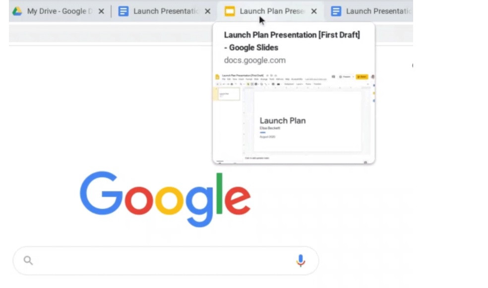 可以将鼠标悬停在标签上并快速查看页面的缩略图预览。