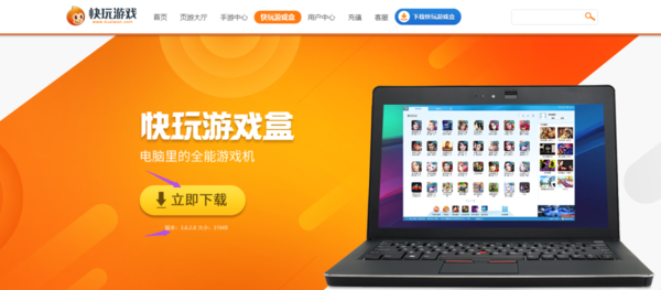 进入到快玩游戏盒软件的下载界面当中后,在此界面中,我们可以在【立即下载】按钮下方看到软件的最新版本号,如果你电脑上的软件不是这个版本的话,就直接点击【立即下载】按钮,来下载最新版本的快玩游戏盒,最后进行软件的安装即可。