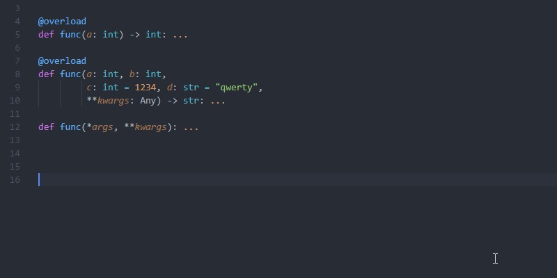 当调用具有多个替代的功能时,Pylance 改进了其显示签名帮助的方式。现在当 Pylance 粗体显示适当的活动参数时,可以轻松地在签名之间导航。