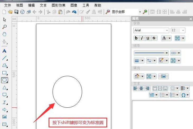 3、这时按下键盘shift键椭圆即可变为标准圆。
