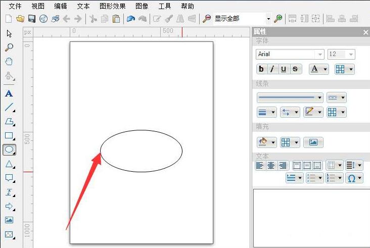 2、指定椭圆的起点后向右延伸,显示出椭圆且不要松开鼠标左键。