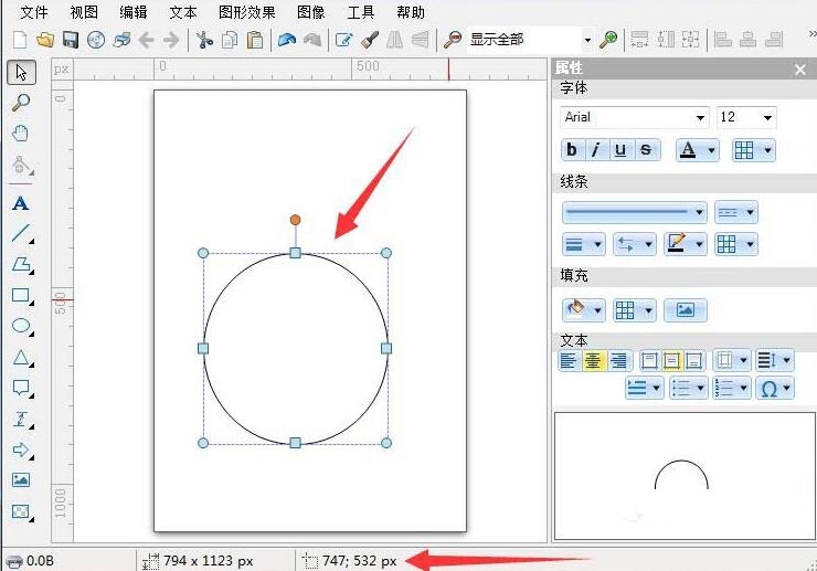 5、标准圆选中状态,下方可查看长宽比大小数值。