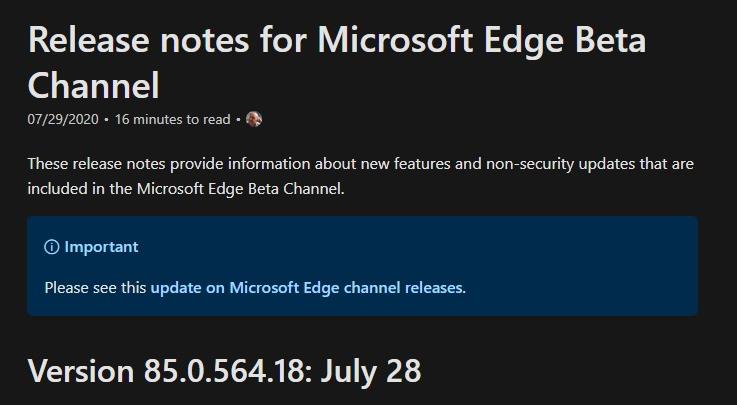 微软目前已经向 Beta 测试版通道正式推送了 85.0.564.18 版本的 Edege 浏览器。此次更新内容包括支持收藏夹和设置的本地同步、IE 模式更新、PDF 新增荧光笔工具、支持 Storage Access API、OneNote 集成、开发者工具 DevTools 更新等。