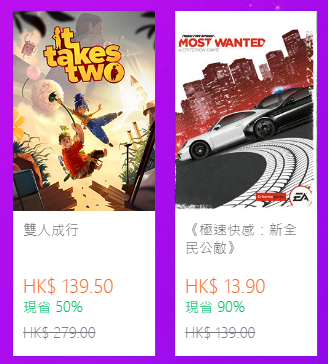 双人成行这款游戏,需要两人合作,去应对里面的重重关卡,在这过程中,不但体验到了游戏中各个关卡的玩法,还可以增进两名闯关者之间的感情,是非常适合情侣之间一起玩的游戏了。双人成行在本次双旦促销中,也是直接打了半价,从279HKD降到139.5HKD,如果对这款游戏觊觎已久,那就快快入手吧!