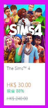 作为一款相对比较真实的模拟类游戏,模拟人生4还是非常招人喜爱的,因为在游戏里,玩家既可以成为“平行世界的另一个我”,也可以在新的世界里做一个截然不同的自己。而且,在模拟人生4中,很多机制也做的非常逼真,与现实世界的一些设定非常接近,这让玩家有了“沉浸式体验”。而且,该游戏在这次促销中,价格从240HKD直接降到30HKD,可谓是跳楼式甩卖呀!