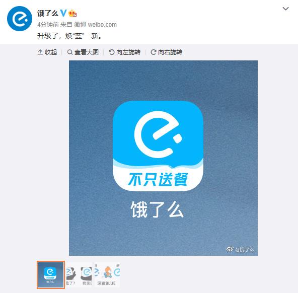 新版饿了么APP正式上线,蓝色图标颜色变浅了,下面还加入了“不只送餐”四个字。
