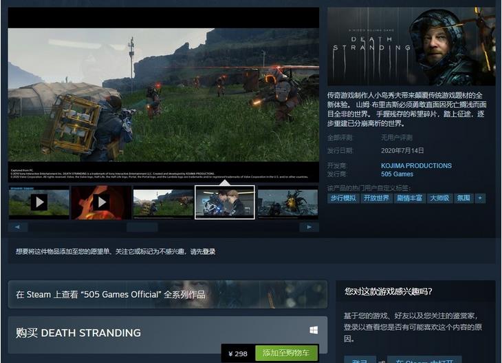 传奇游戏制作人小岛秀夫的史诗级作品《死亡搁浅》(DEATH STRANDING)今晚 22 点正式在 Steam 和 Epic 商城解锁发售,国区售价为 298 元。