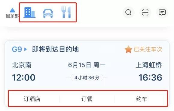此外,定制化出行服务,12306 APP会根据当前用户地理位置推荐酒店、约车、餐饮服务。