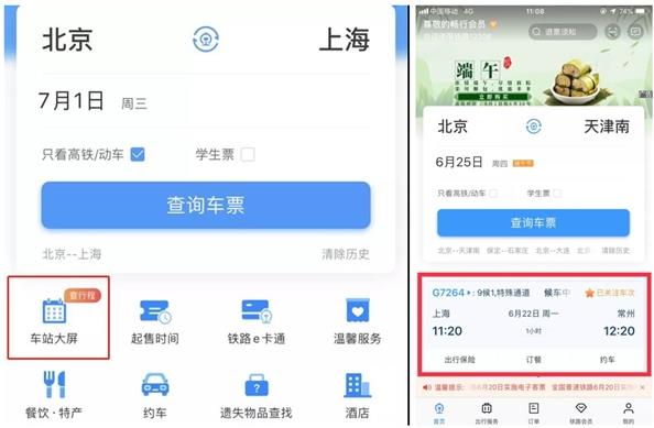 新版铁路12306APP首页新增“车站大屏”功能,支持显示一个最近关注的行程,如果亲朋好友乘坐火车出行,你想了解他们的乘车信息,什么时候发车?什么时候到站?那么一定不要错过这个功能。