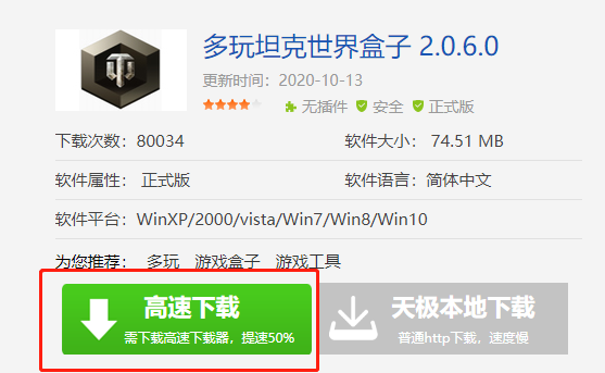 方法1:直接从本站进行多玩坦克世界盒子的安装包的下载,点击上方的“查看详情”进入下载页面,然后单击“高速下载”就可以了,这样也省去了需要自行查找资源下载的麻烦。