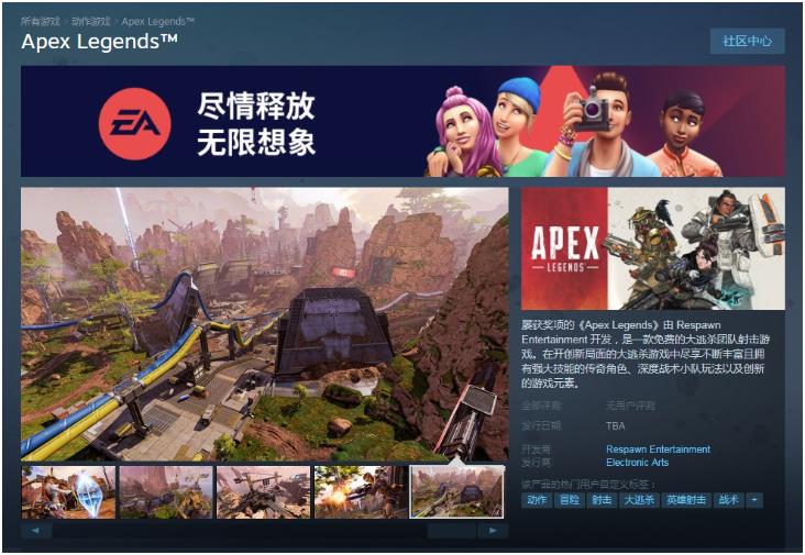 由重生工作室打造的《Apex英雄》已经上架Steam商店,目前处于锁国区的状态,将于今年秋季推出。