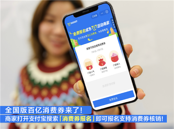 全国商家只要在支付宝搜索“消费券报名”,完成报名后即可在7月支持消费券核销。