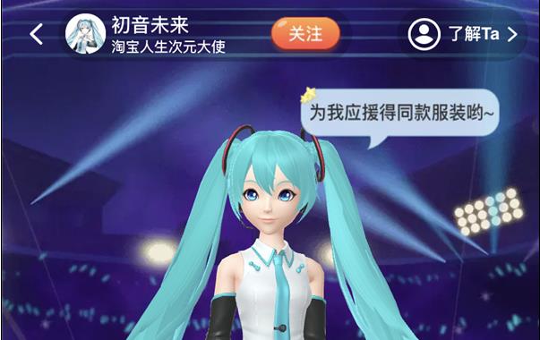 进入淘宝搜索初音未来后会发现她已经担任了淘宝人生次元大使,进入主页会显示初音的淘宝人生形象,粉丝可以做任务打Call积累贡献值,还可以获得初音同款V4C公式服。