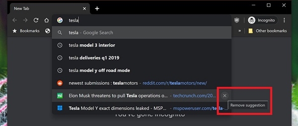 当你将鼠标悬停在某个条目上方的时候,Omnibox 会在界面右侧显示一个“×”记号 —— 轻点鼠标即可完成操作、无需再使用繁琐的组合键。