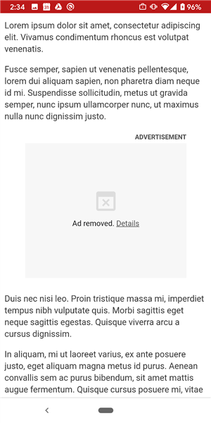 对此谷歌宣布将直接对这些广告下手,如果Chrome检测到广告过设定标准,会自动屏蔽该广告,显示“广告被移除”,如果用户点击则会跳转至错误页面。