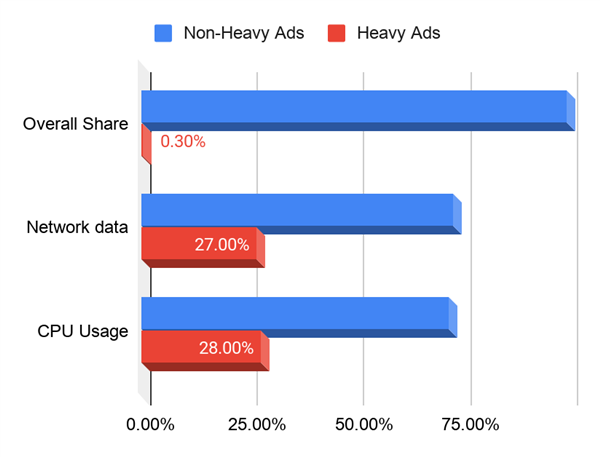 但这0.3%的广告占用了整个广告27%的网速,和28%的CPU使用率,堪称害群之马。