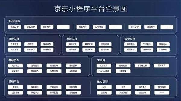 京东小程序开放平台正式发布,开启京东应用、京东金融应用、京迈应用等应用平台,涵盖家电、数码、母子、汽车、体育、教育、智能家居、酒店等诸多场景。