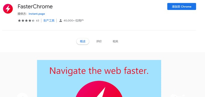 这是什么意思呢?在上网的时候,你移动鼠标,对准某个链接再点击,这个过程是需要耗费时间的。而安装了FasterChrome后,你移动鼠标到这个链接时,FasterChrome就会预读这个链接对应的网页,当你真正点击的时候,浏览器就把已经读取好的网页渲染出来,这样开启速度就得到了提升。