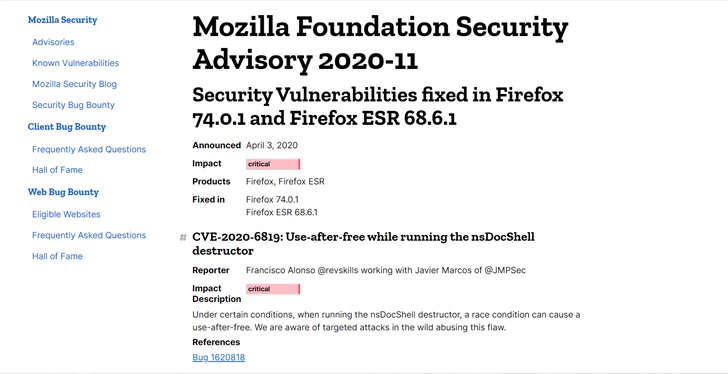 Mozilla 紧急发布了Firefox 74.0.1和 Firefox ESR 68.6.1 版本,针对其内存空间管理方式中存在的两个错误进行了修复。