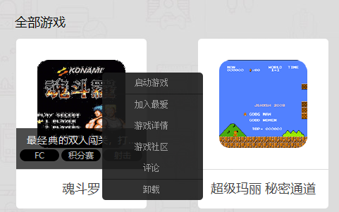 点击悟饭游戏厅页面上方的“我的游戏”字样,就能跳转查看用户下载安装的全部游戏。选中对应的游戏图标后,单击鼠标右键,就能将游戏加入“我的最爱”栏中,或者是卸载掉游戏。