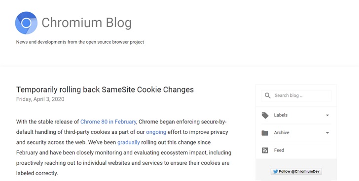 Chrome 工程总监 Justin Schuh 在Chromium Blog发文宣布暂时回滚 SameSite Cookie 功能,以确保新冠病毒疫情期间网站的稳定性。