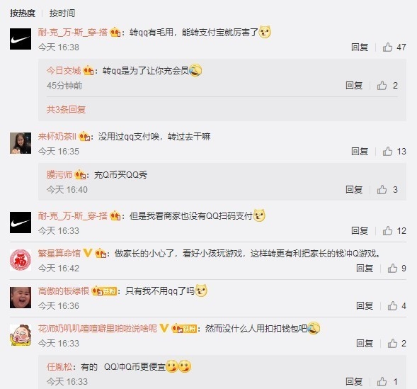 不过,该功能上线后,很多网友都表示不解。“没用过QQ支付唉,转过去干嘛?”确实,对大多数用户来说,现在主要都在使用微信和支付宝转账,很少会用到QQ钱包。那么,你觉得微信上线这个小程序有用吗?
