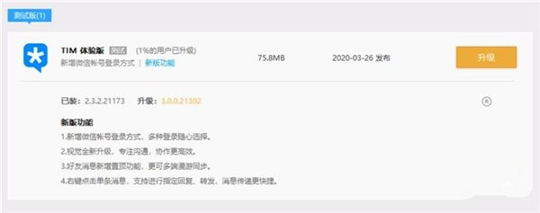 今天腾讯软件管理中提示PC版TIM可升级至3.0测试版本,主要新增了微信登录方式,以及更新了软件UI样式。