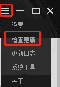 在电脑上打开悟饭游戏厅客户端,点击页面右上角的三根横线图标,在选型栏中点击“检测更新”字样。如有可更新的版本,就在弹出的窗口中,点击下载安装最新版就行了。