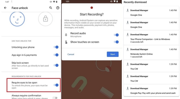 新版Android 11带来了两项重要功能,一项是针对Pixel 4、Pixel 4 XL的面部解锁改进,另一项是屏幕录制。