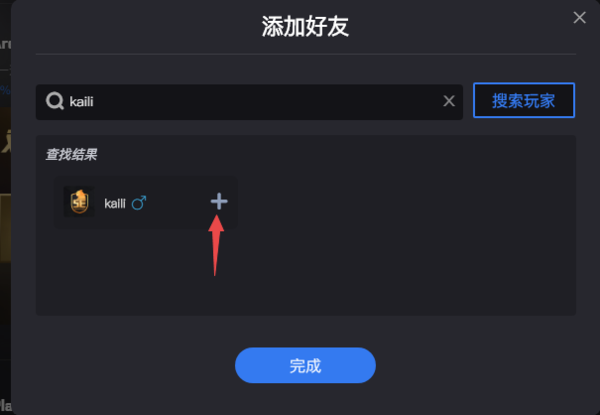 接着,软件就会弹出添加好友的窗口了,此时我们输入想要添加好友的游戏ID,然后点击【搜索玩家】按钮。
