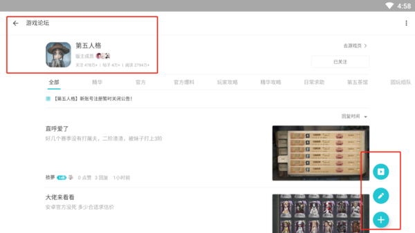 想在TapTap模拟器上发布游戏帖子的小伙伴,在打开并登录自己的TapTap模拟器账号之后,选择页面上方的“论坛”选项,找到想要发布的帖子版块,比如说第五人格论坛。