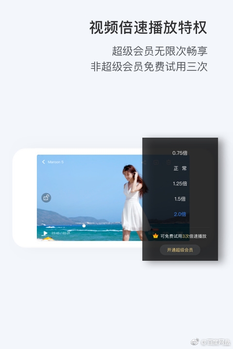 今天,百度网盘宣布手机客户端支持视频倍速播放,支持0.75、1.25、1.5、2倍,多种模式任意选择,下载最新版手机客户端即可体验,iOS是8.9版、Android是8.8版。