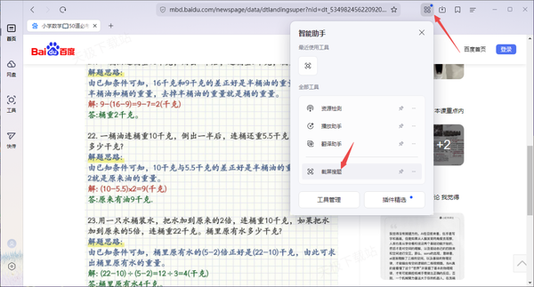 3、截图搜题工具添加好以后,进入到要搜题的界面,然后再次点击右上角的【四个小方块】图标中的【截屏搜题】工具。