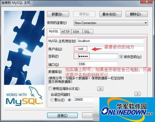 在这里输入数据库的连接信息,注意修改自己的用户名和密码