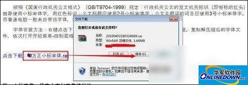 打开网页之后,我们看见有一个:方正小标宋 的压缩包,我们直接点击下载,将它保存在桌面