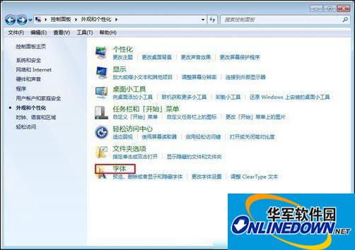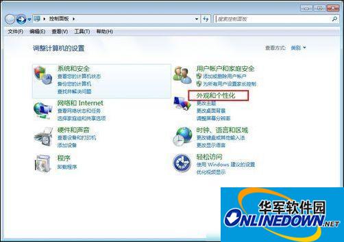打开控制面板,选择外观和个性化