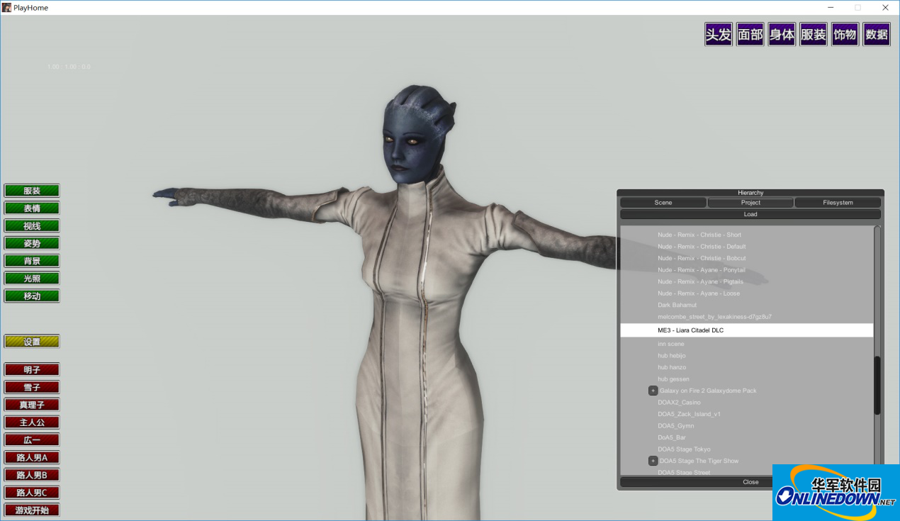 2、大部份人物存档可以和HS参数通用(服装发型肯定不一样)、背景素材通用。带391个studio scene,部份HS studio scene可通用。