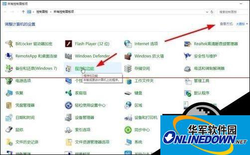 3、在控制面板中,选择查看方式为大图标或者小图标,然后点击“程序和功能”;