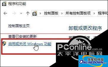 4、在打开的窗口中,点击右边菜单的“启用或关闭windows功能”;