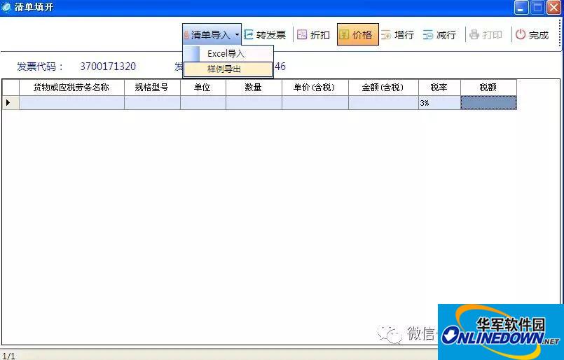 开票人可以根据自己的实际情况,将所开清单内容导入到模板中,然后再从清单填开界面中,点击“清单导入”下的“EXCEL”导入即可自动生成销货清单