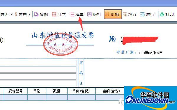 然后点击工具栏上的“清单”按钮,进入清单填写画面