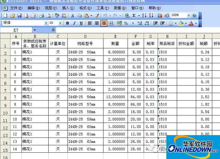 注意:导出来的是一个压缩文件,对其进行压缩,会有一个《增值税发票税控开票软件清单信息数据接口规范样例》的EXCEL 文件,这个就是发票销货清单的导入模板,如下图