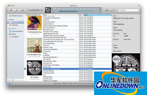 Swinsian for mac支持常见音频格式MP3,M4A / AAC,WMA,Ogg Vorbis,FLAC,WAV,AC3等,无缝播放、回放;专辑音乐封面的自动加载;在设备传输过程中自动转码;高级搜索、模糊搜索功能等等都是它的特色。