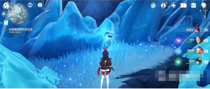第八个石碑、首先我们要解锁第三个坚冰碎片,来到星荧洞窟下方,第三个坚冰碎片就在此处,要先找齐附近的仙灵,才能解开坚冰碎片边上的屏障。