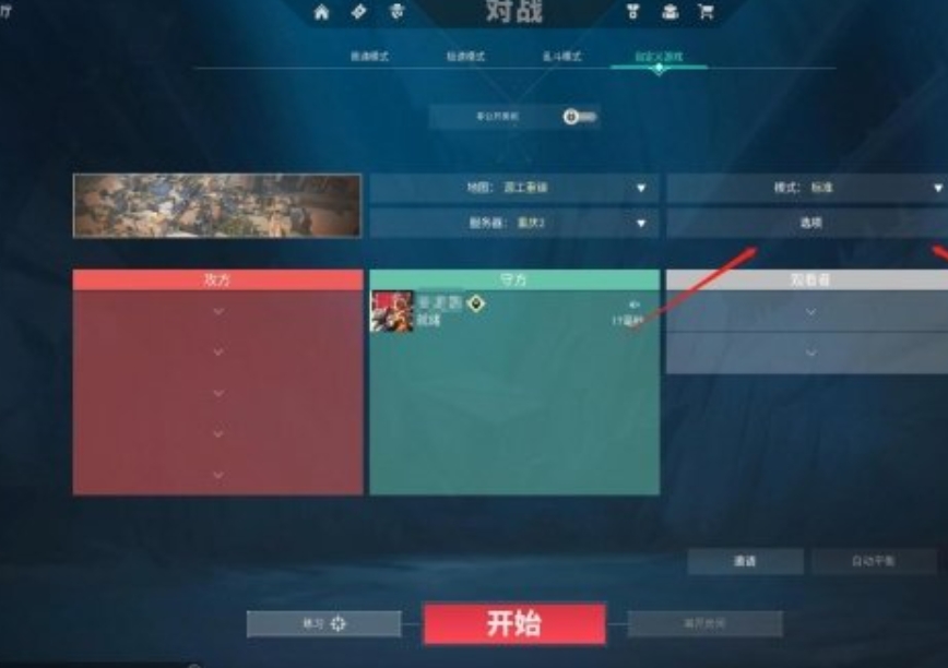 1、打开无畏契约游戏,进入游戏的主界面或大厅界面,点击“创建自定义游戏”,然后点击“选项”功能进行设置。找到“允许开启秘技”选项点击开启。