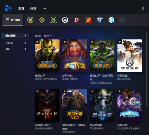 目前,暴雪战网客户端国内版支持下载使用的游戏还有限,只有九款游戏可以使用。这九款游戏中,有的需要付款购买,有的可以免费下载体验,具体情况如下。